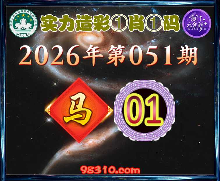 051期:《实力造彩》 ①肖①码】【01】开:马01