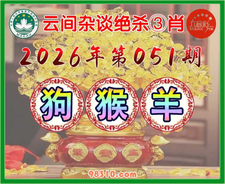 051期:《云间杂谈》 绝杀③肖【狗.猴.羊】开:马01